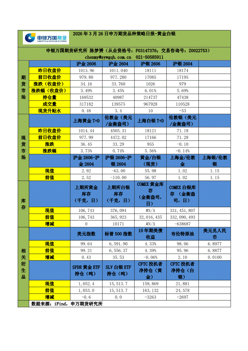 申银万国期货-品种策略日报~黄金白银-260326