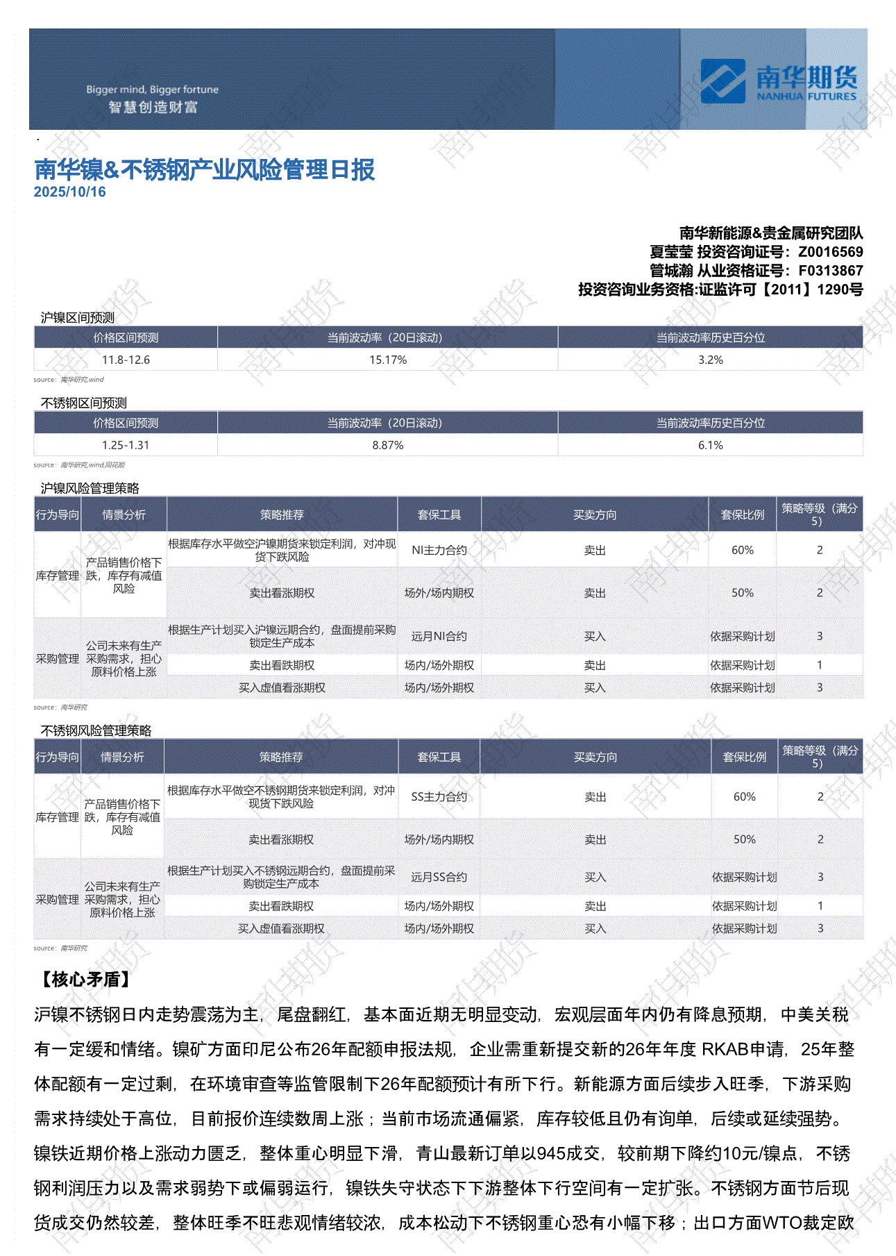 南华期货-镍&不锈钢产业风险管理日报-251016