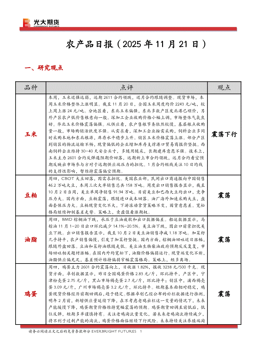 光大期货-光期农产品:2025年鸡蛋策略月报-251130