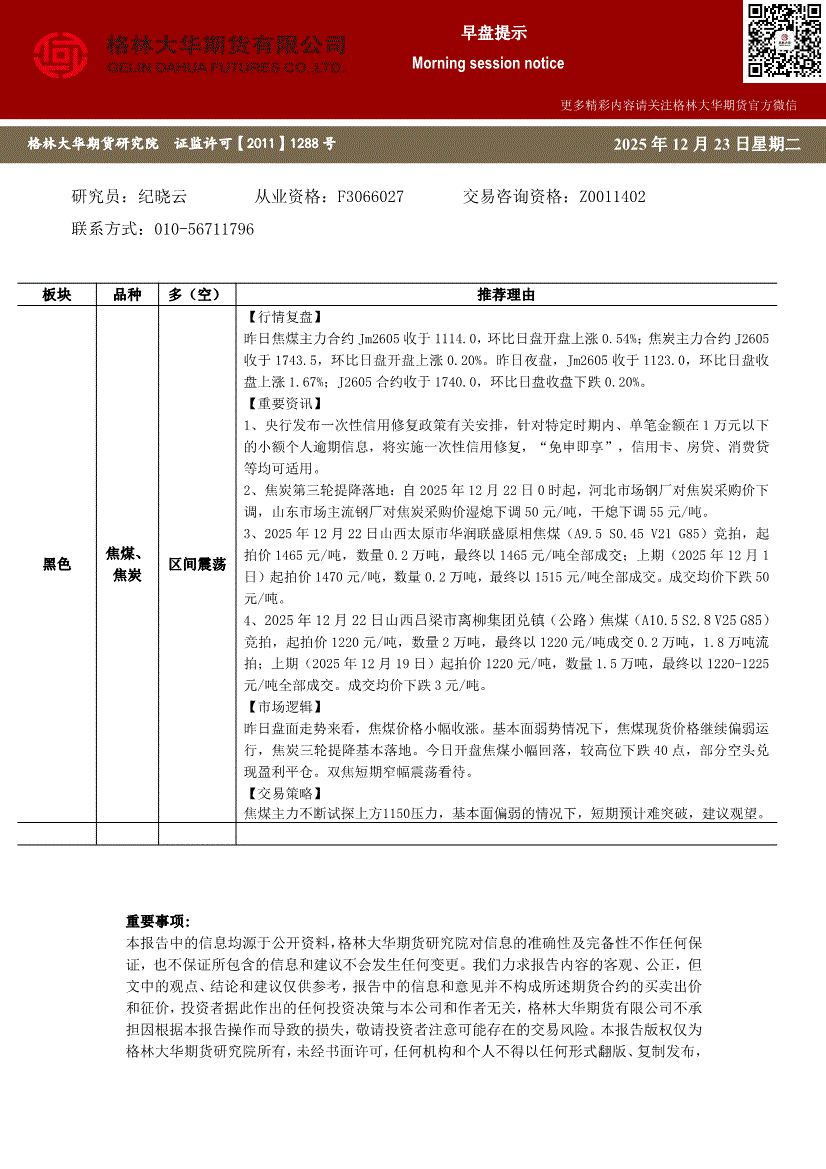 格林大华期货-一周简评:预计钢矿震荡走势-251220