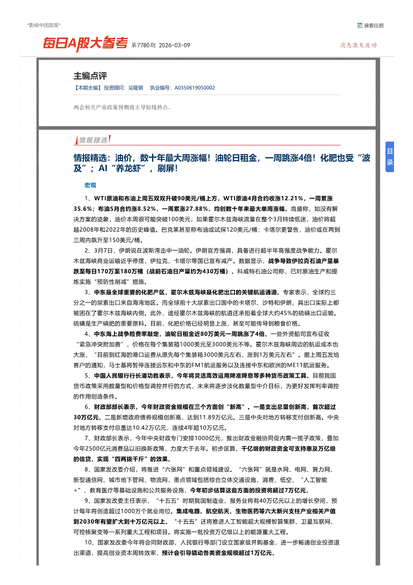 博览财经-每日A股大参考第7780期-260309