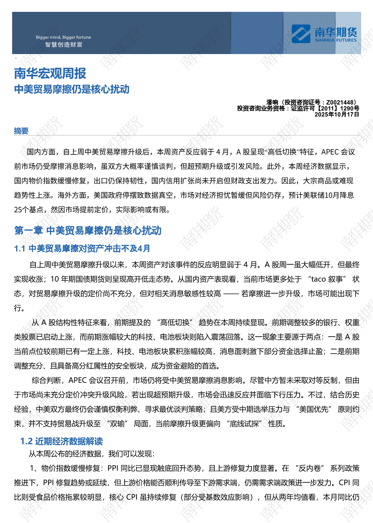 南华期货-宏观周报:中美贸易摩擦仍是核心扰动-251017