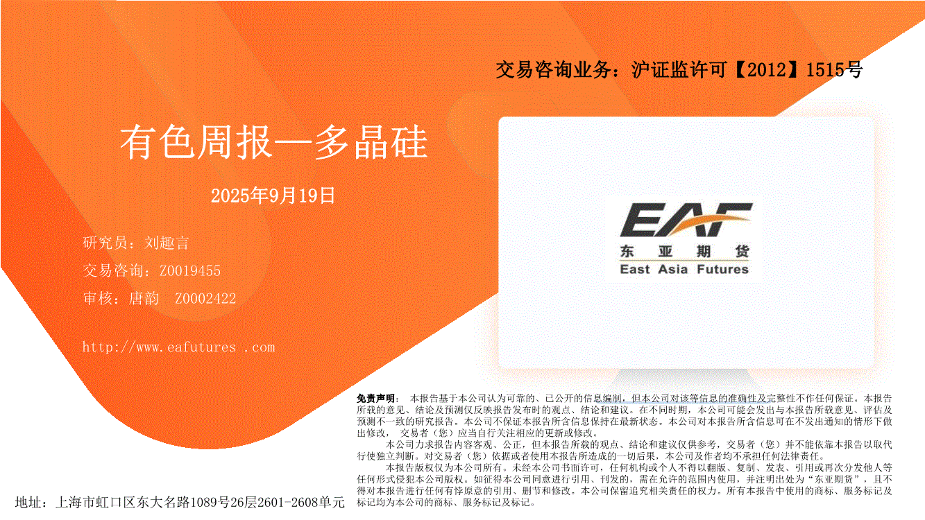 上海东亚期货-有色周报:多晶硅-250919