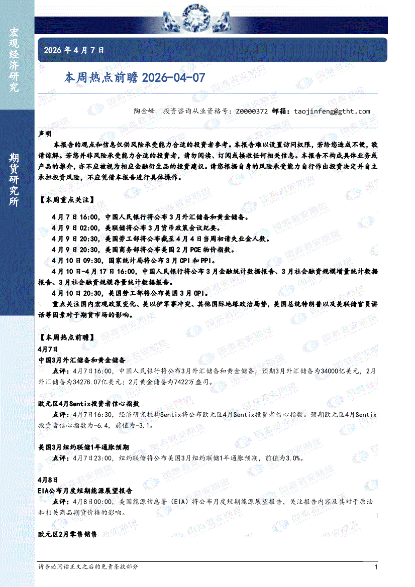 国泰君安期货-股指期货将偏强震荡,黄金、白银、丁二烯期货将震荡偏强,原油期货将震荡偏弱-260401