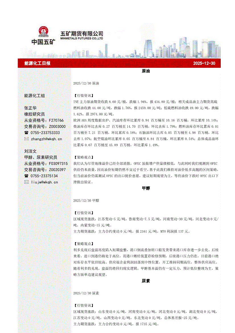 五矿期货-能源化工日报-251230