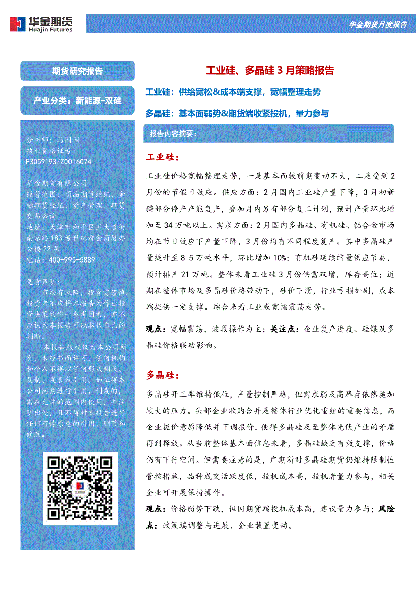 华金期货-工业硅、多晶硅3月策略报告:工业硅,供给宽松&成本端支撑,宽幅整理走势,多晶硅,基本面弱势&期货端收紧投机,量力参与-260304