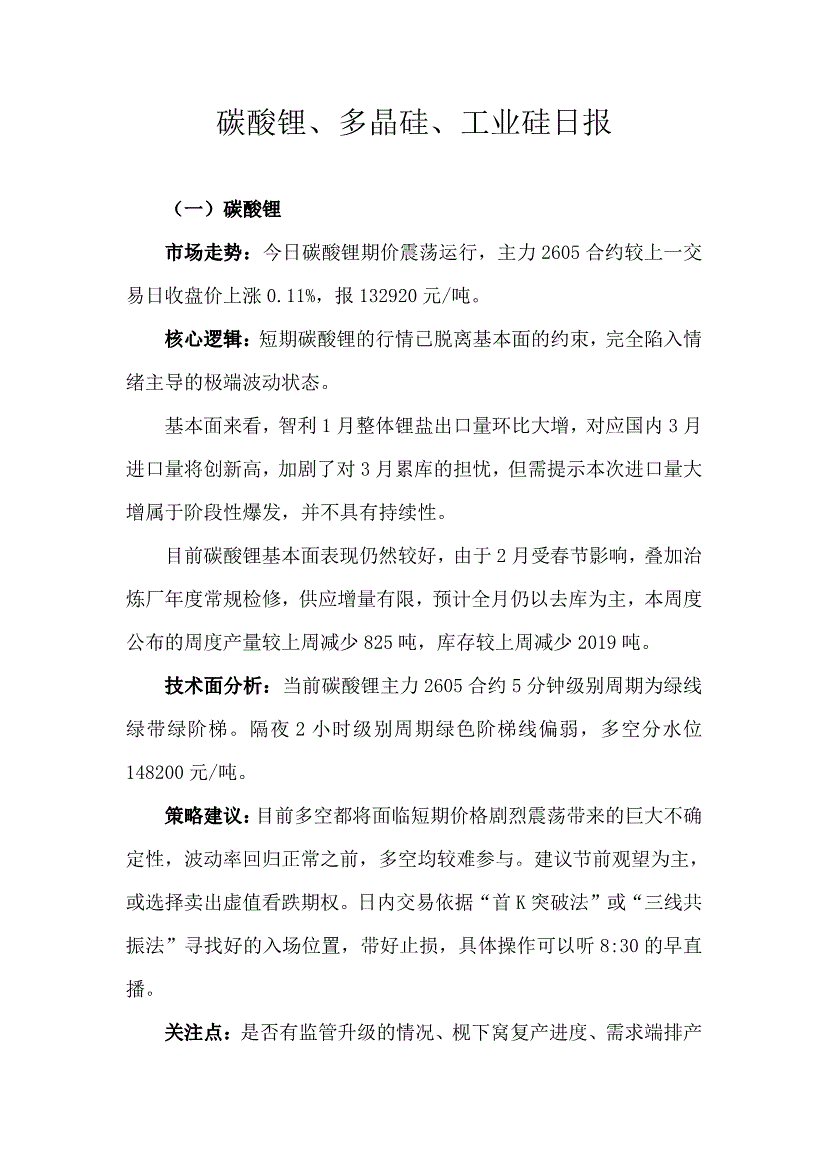 天富期货-碳酸锂、多晶硅、工业硅日报-260203