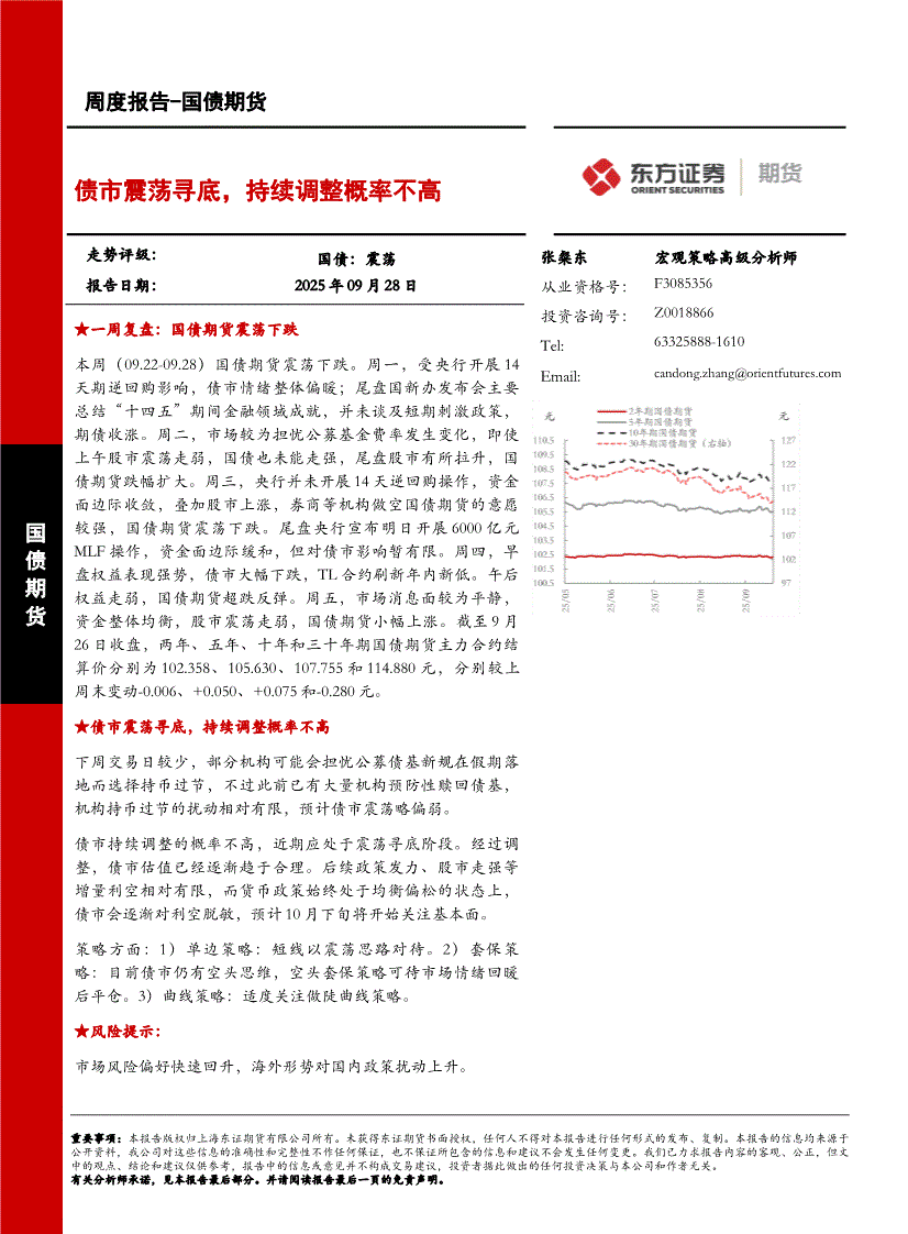 东证期货-周度报告~国债期货:债市震荡寻底,持续调整概率不高-250928