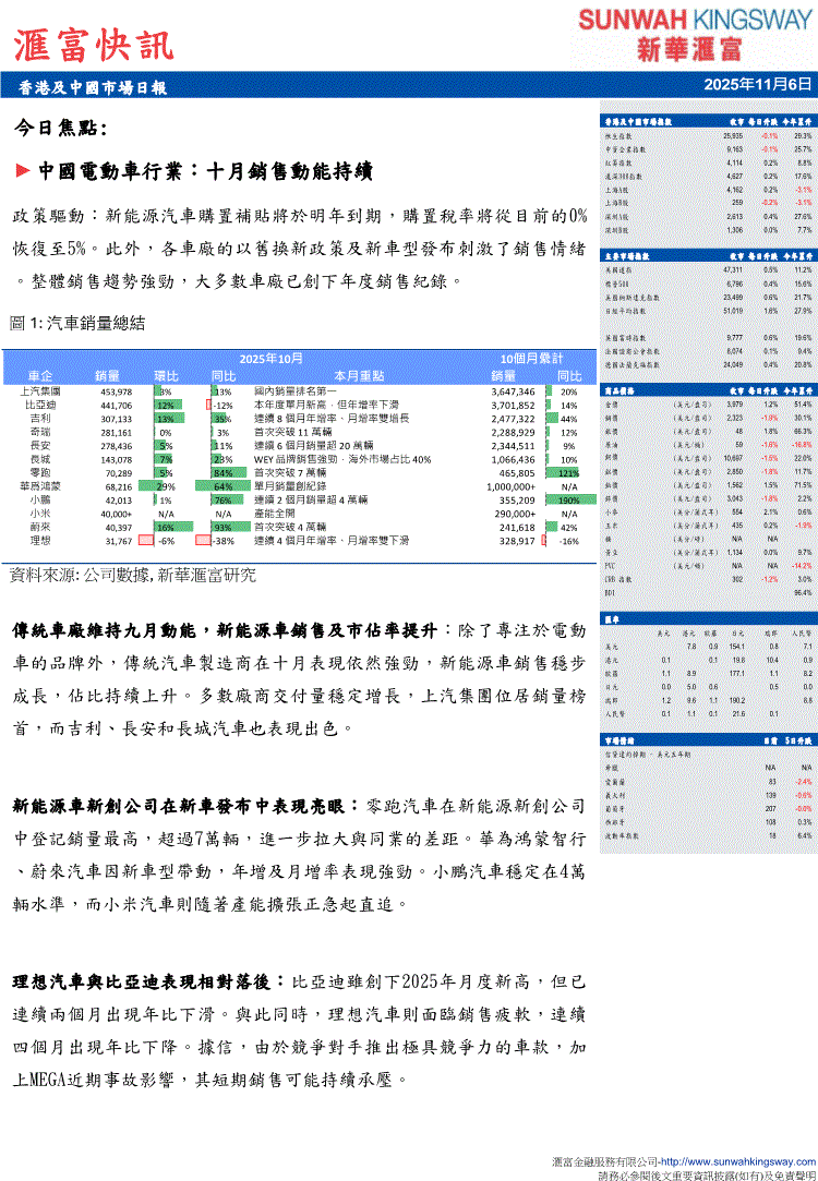 新华汇富-滙富快訊:香港及中國市場日報-251106