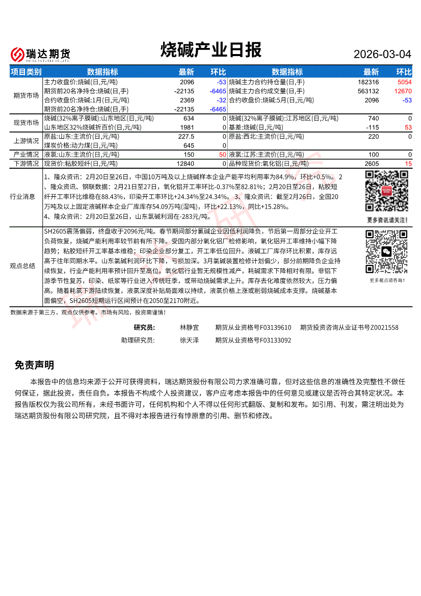 瑞达期货-烧碱产业日报-260304