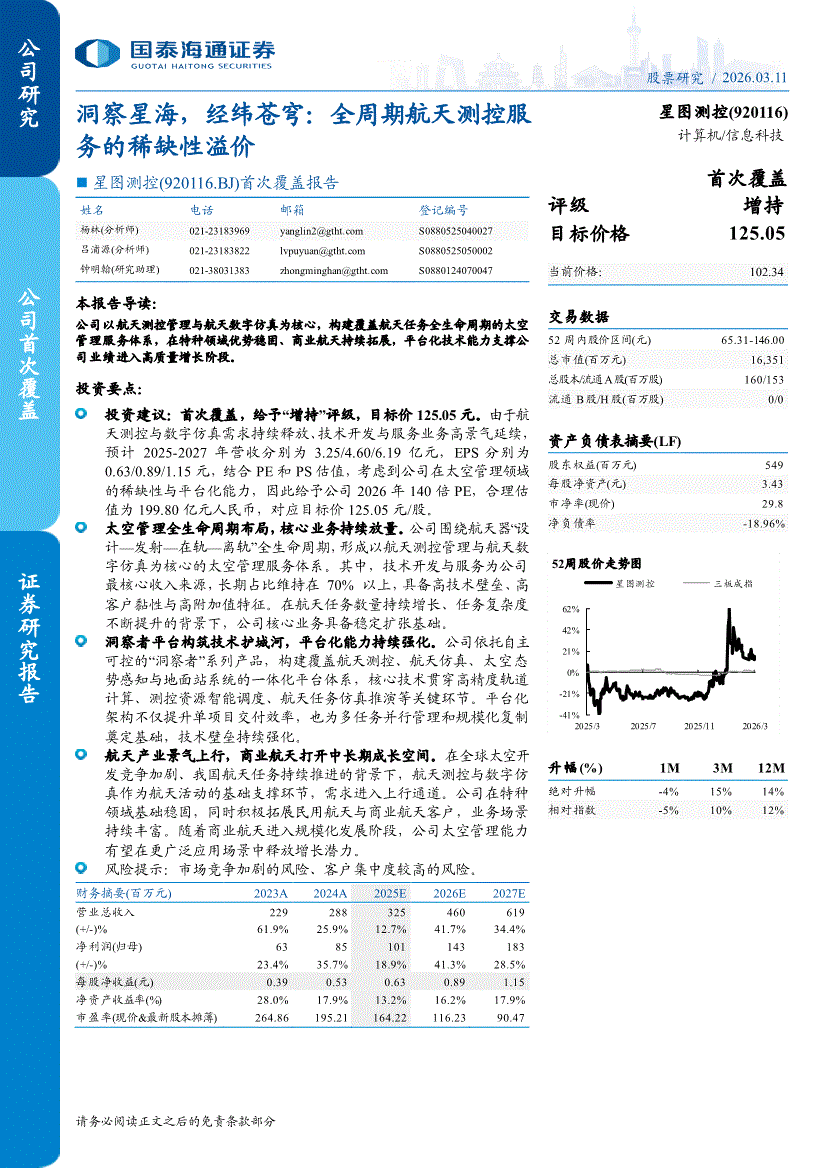星图测控:国泰海通证券-星图测控-920116-首次覆盖报告:洞察星海,经纬苍穹,全周期航天测控服务的稀缺性溢价-260311