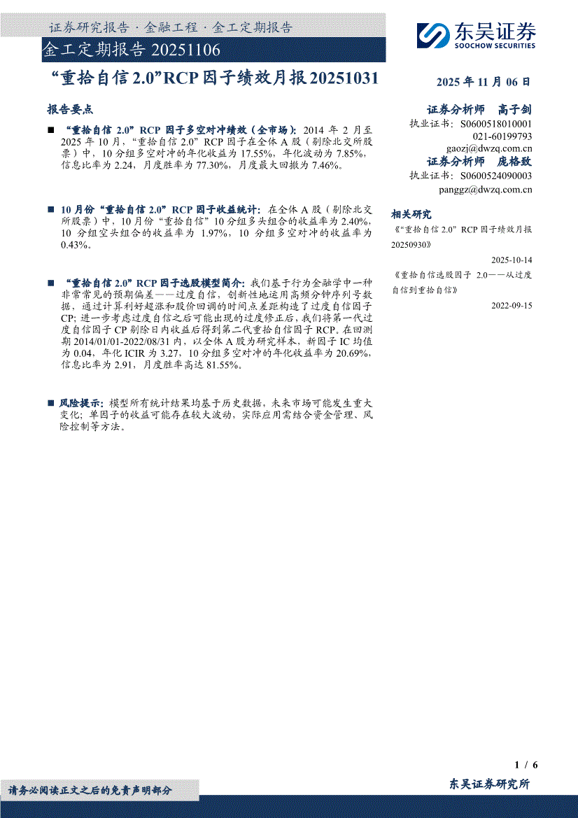 东吴证券-金工定期报告:“重拾自信2.0”RCP因子绩效月报20251031-251106